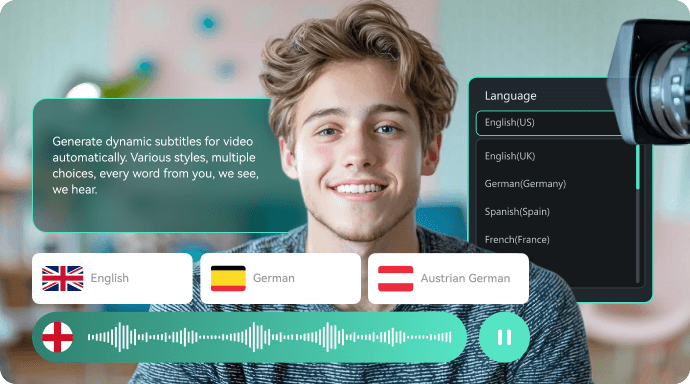 Filmora admite hasta 33 tipos de idiomas para transcribir. Tanto si hablas inglés, japonés, francés u